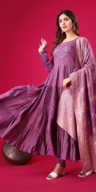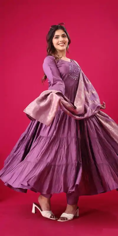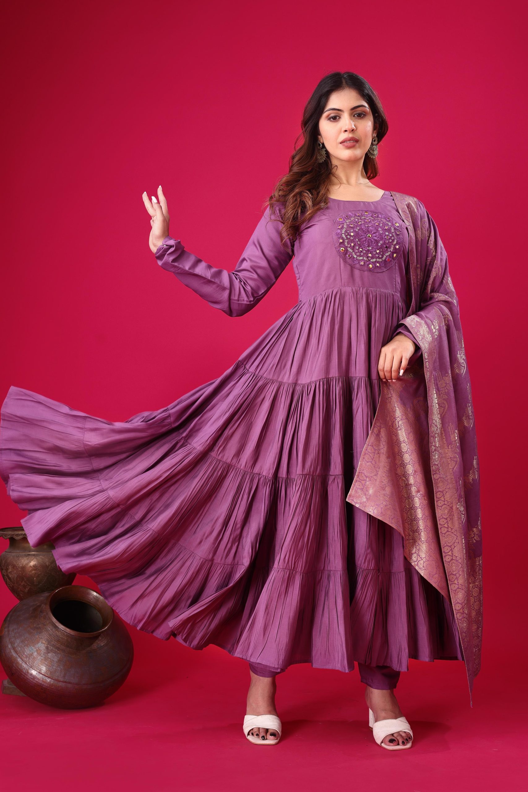 Purple Roman Silk With Embroidery Sequence Work Anarkali Gown