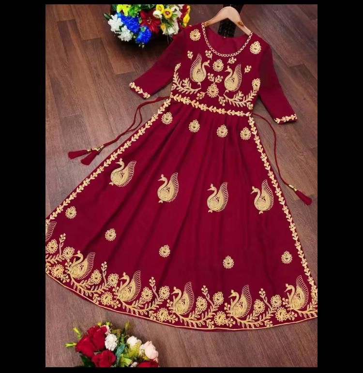 Β Fabrics | Gown Fabric :- Georgette Work :- Heavy embroidery Work Inner :- MicroΒ Size :- Free Size Sami stitched Fully Stitched |