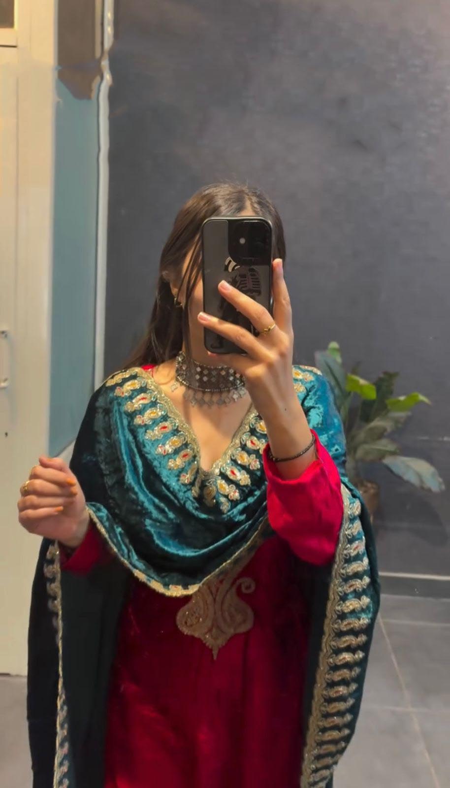 Red Velvet With Heavy Embroidery Sequence Salwar Suit