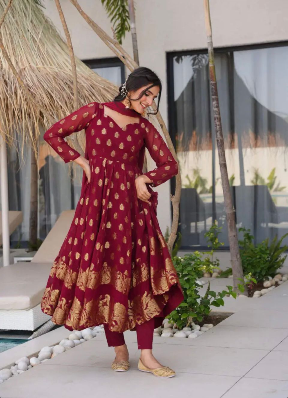 Fabrics Detail Gown Fabric :heavy Faux Georgette With Embroidery Work And Full Sleeves Gown Inner : Micro Cotton Gown Size : Free Size Semi Stitched Gown Length : 51-52 Inc Gown Flair : 3 Mtr Fully Stitched Bottom Fabric :heavy Micro Cotton And Elastic (Full-stitched Dupatta Fabric : fox Georgette And Four Side Lace Border Dupatta Length: 2.10 Mtr |