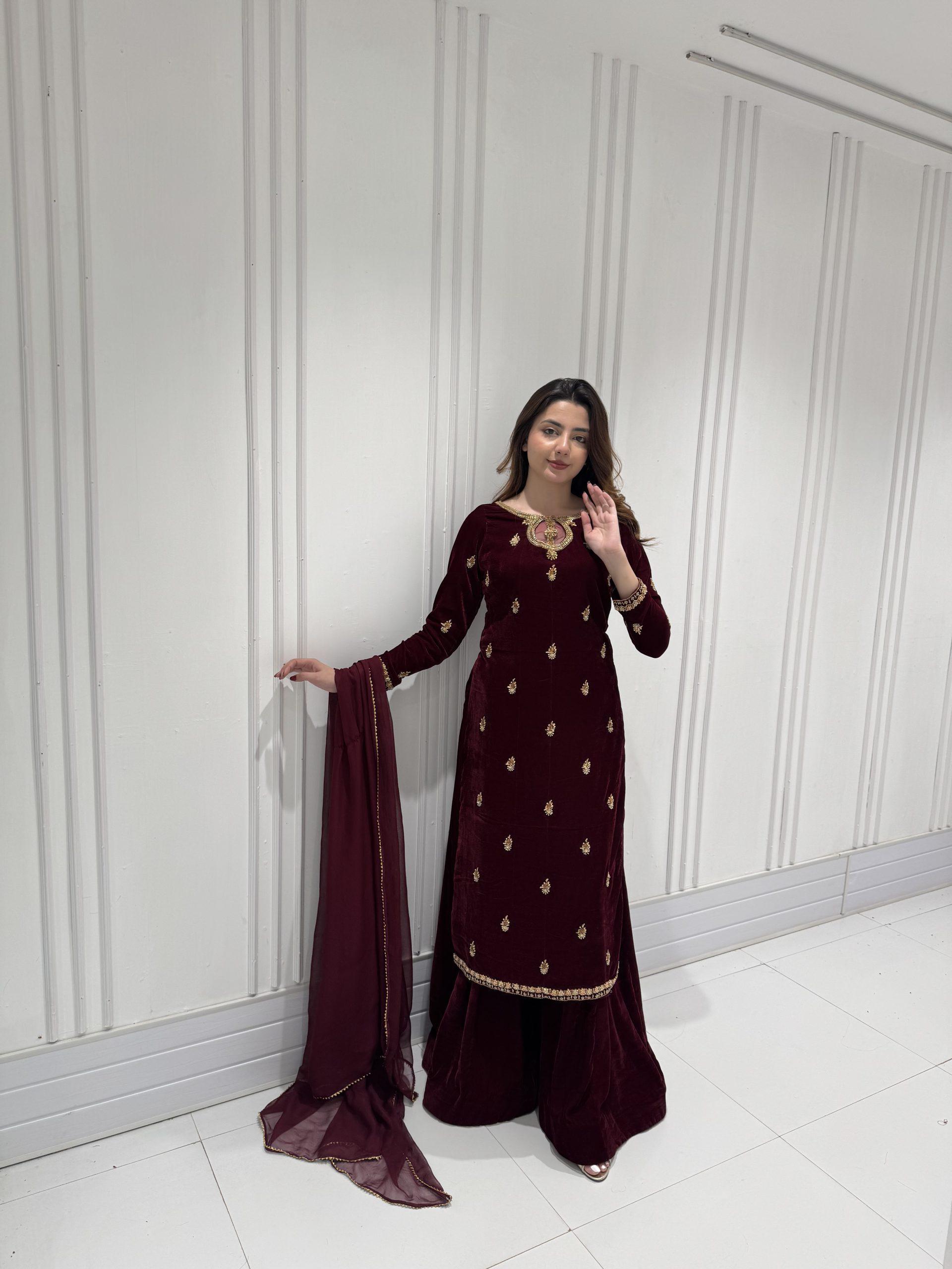Maroon Velvet Embroidery Work Salwar Suit