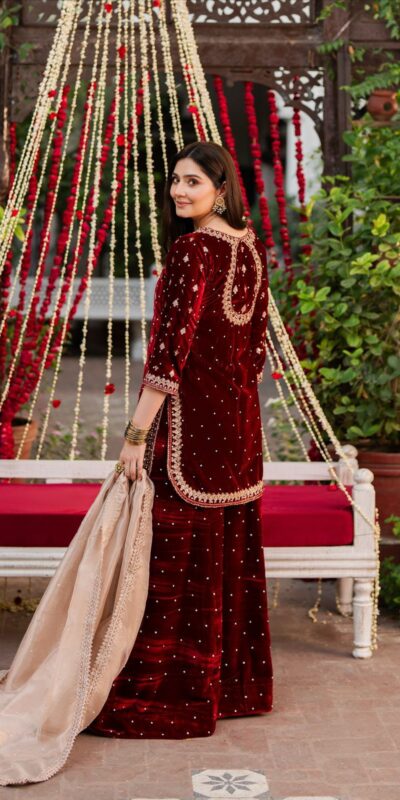 Bottom Fabrics : Heavy Viscose Velvet With Moti Work And Elastic