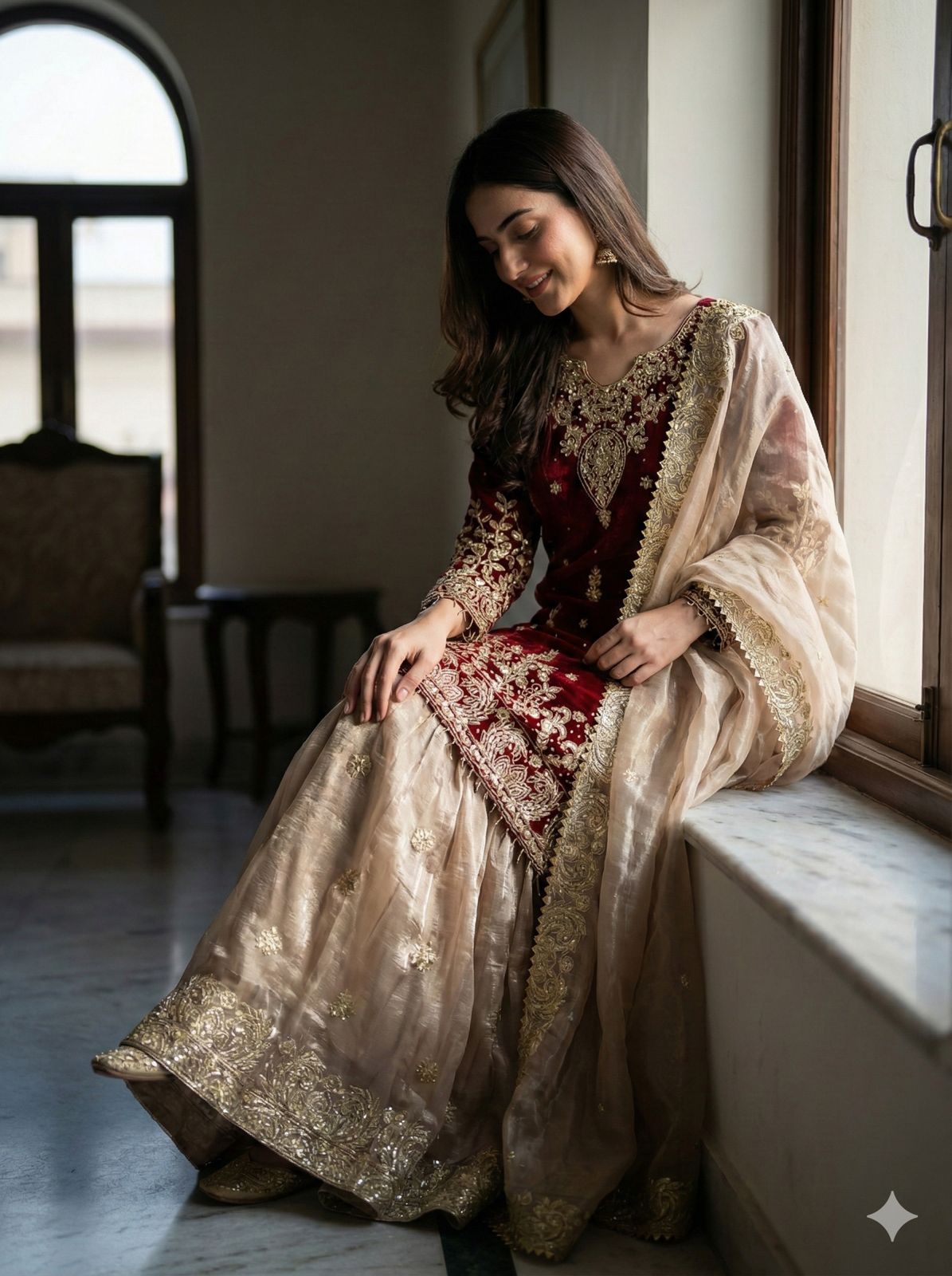 Maroon Zimmy Choo Silk Embroidery Work Slwar Suit