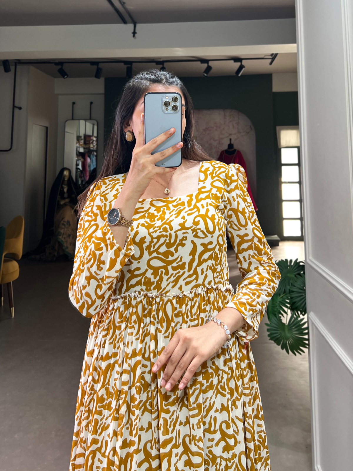 Fabrics | Gown Gown Fabric : Georgette Gown Work : Printed Chest Size : 38” (M) (Inside 2 inch extra margin support up to 40 for your body comfort) Waist Size : 38" Shoulder : 15" Sleeve Length : 18" Length : 57" Flair : 4.50 Meter Lining : Cotton (full upto bottom) |