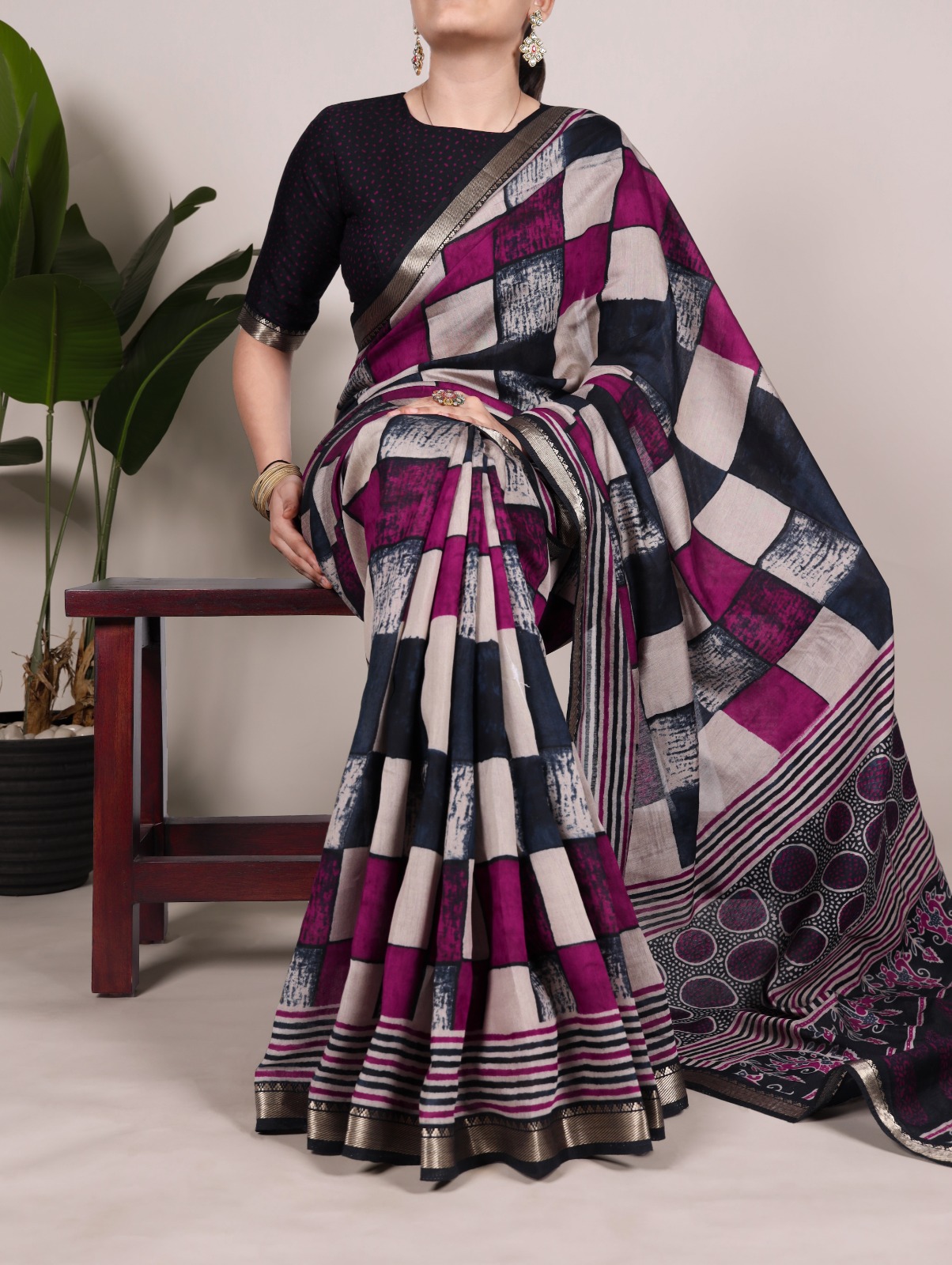 YNF 7045 Navy Blue Color Polyester Viscose Chanderi Printed Border Saree Casual, Wedding, Festive, Events . Expected Delivery  4-6 Working Days @1499/- only                                | Sarees, Bollywood Sarees, Creative Sarees, Designer Sarees, Embroidered Sarees, Ethnic Saree, Modern Digital sarees, Party Wear Sarees