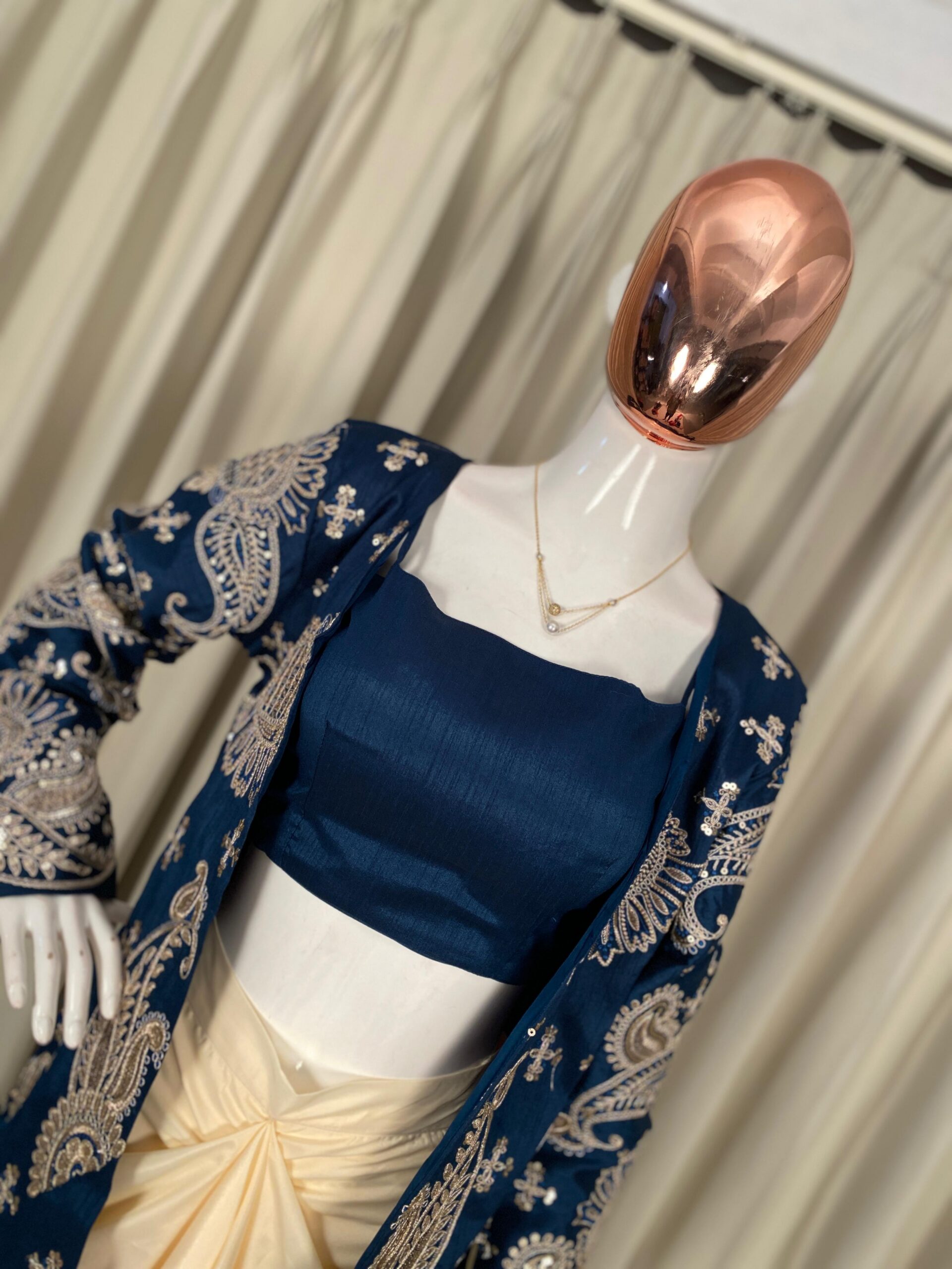 Navy Blue French Crape Embroidery Work Dhoti Suit