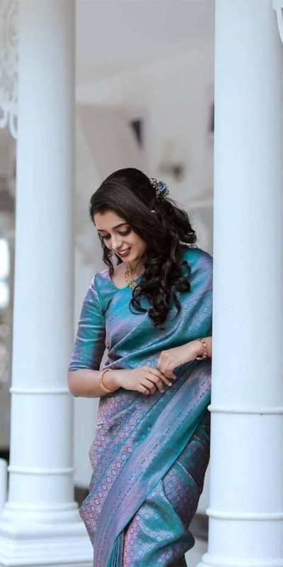 139 reviews for Blue Soft Litchi Silk Jacquard Work On All Over Saree