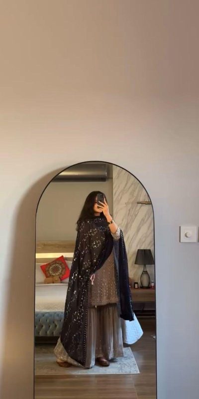 Β  Fabrics Top Fabric : Heavy Faux Georgette With 5mm Embroidery Sequence Work With Beads Work With Full Sleeve Top Length :- 39-40 inch Top Inner : Heavy Micro Cotton Top Size. : Free Size Semi Stitched (FULLY STITCHED READY TO WEAR)Gharara Fabrics : Heavy Faux Georgette With 5mm Embroidery Sequence Work Pent inner : Heavy Micro Cotton Pent Length : 40-41 Inch fully stitched Dupatta Fabric : Heavy Faux Georgette With 5mm Embroidery Sequence Work Dupatta Length : 2.10MTR