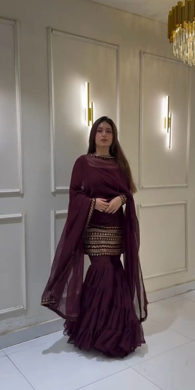 105 reviews for Wine Georgette Embroidery Sequence Work Salwar Suit