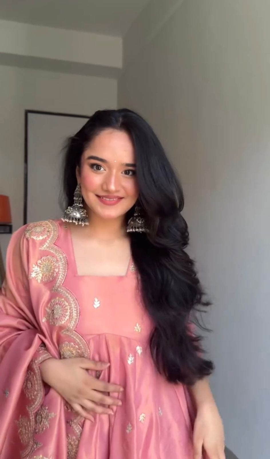Peach Gold Crush Silk Embroidery Work Gown