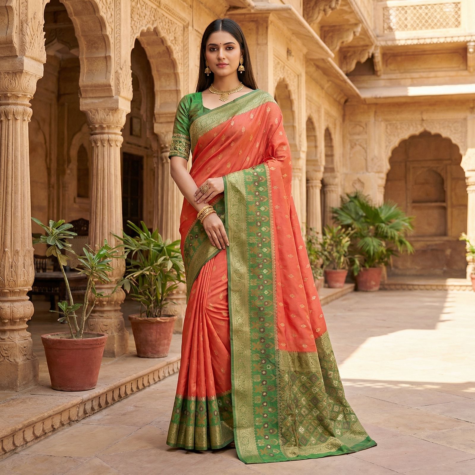 Ikkat Pattern Contrast Border & Pallu with Zari Border which will give you a comfortable yet attractive look. The best part of this is its woven work.