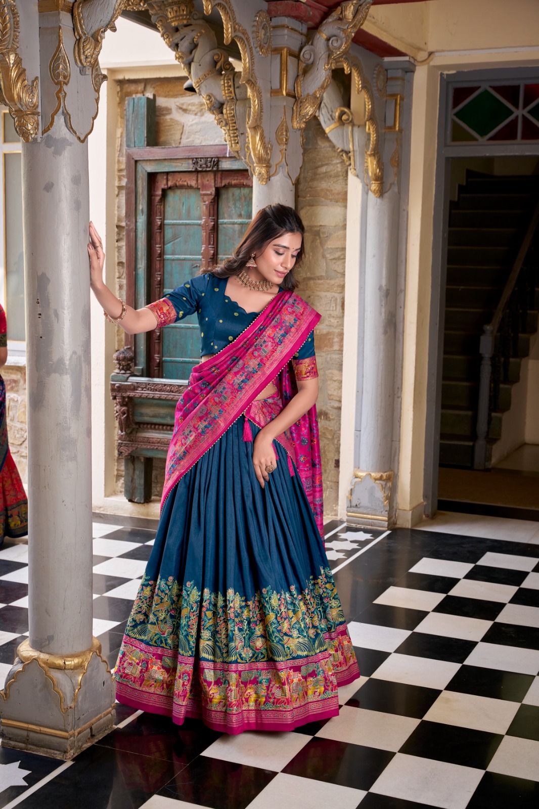 Peacock Blue Tasar Silk With Gotta Patti Lehenga Choli