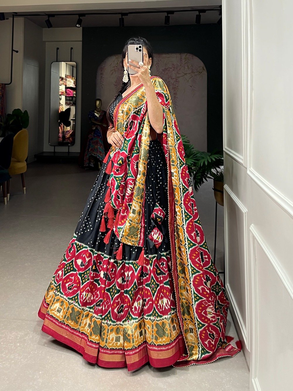 Work : Patola Print with Gotta Patti Lace Border also comes with tassels