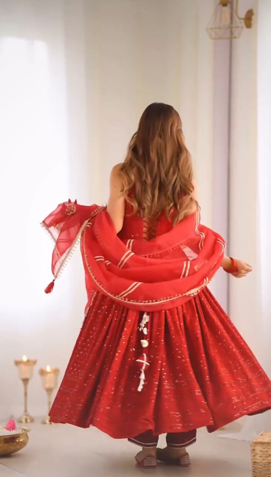 143 reviews for Red Rayon Silk Chikan Kari Sequence Salwar Suit