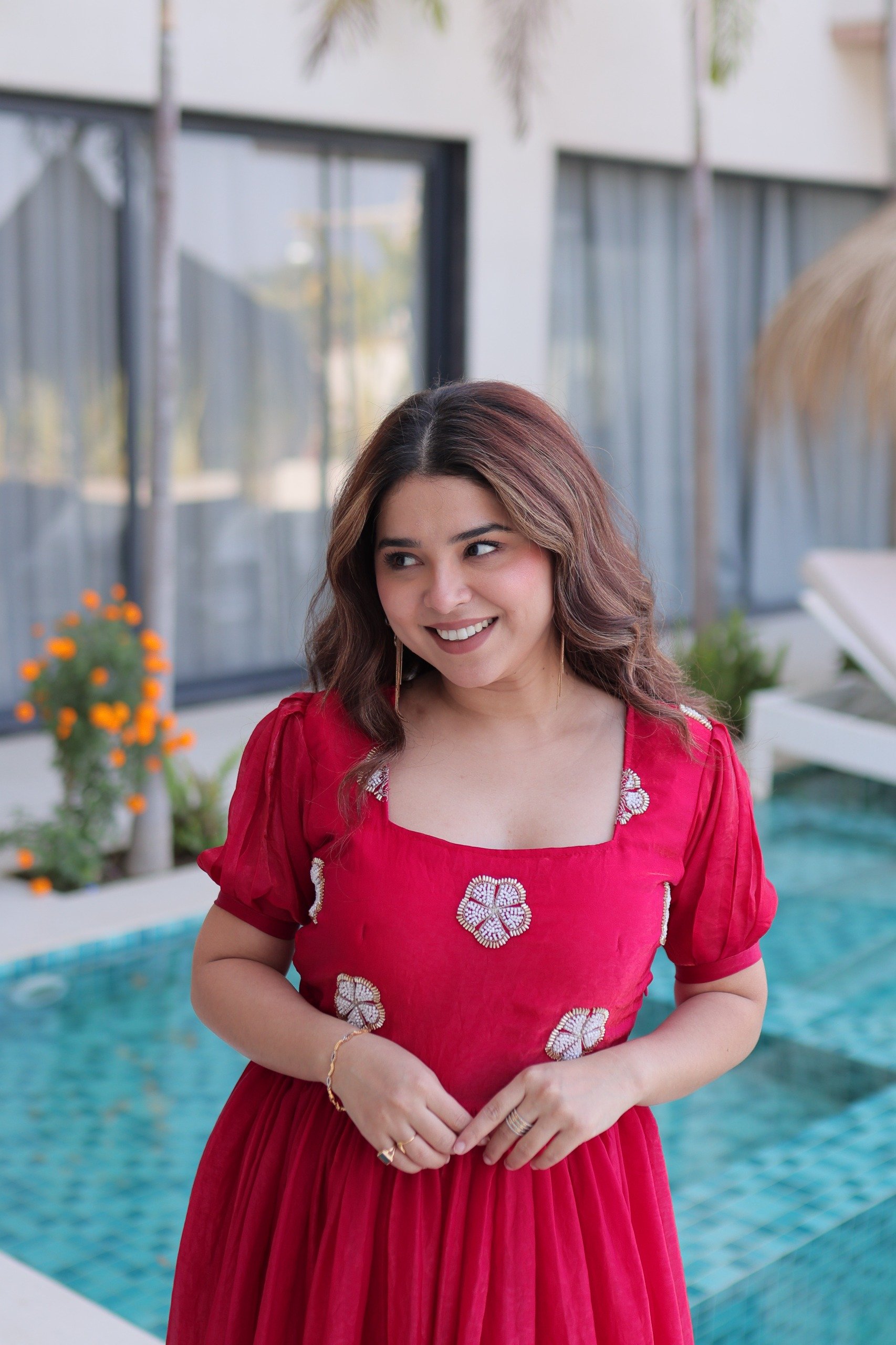 Diwali puja se lekar card party tak same gown wear kiya, full day comfortable. Bas end of day thodi crease aa gayi waist pe. Fabric non-itchy. My chachi ne bola pattern thoda young lag raha.