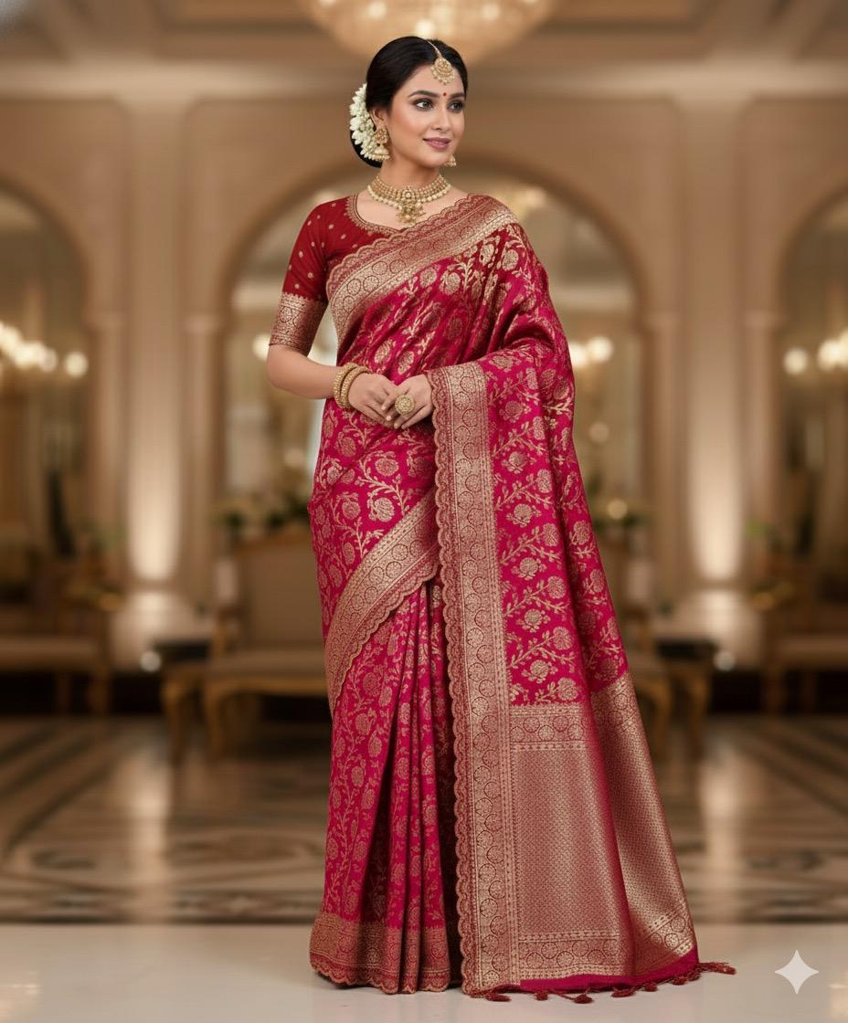 The detailing on the pallu is exquisite. It has a rich, heavy look that screams luxury. Very happy with the prompt delivery.