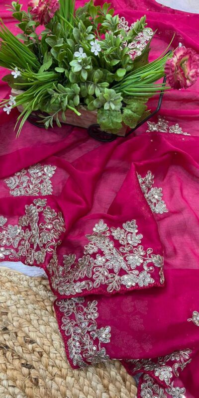 Saree Work : Fancy Jari dori & Thread with Sequins and jari Embroidery Work with cutwork Border