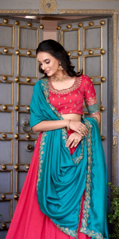 Pink Vichitra Silk Embroidery Zari Work Lehenga Choli