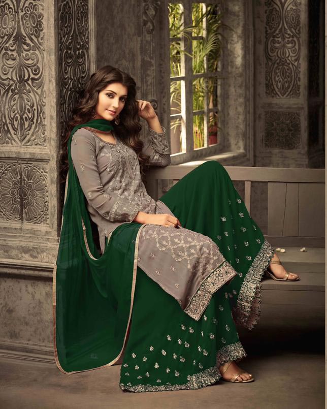 Fabrics | Top Fabric: Georgette With Embroidery work Stone Top Inner : Santoon Top Size : Free Size Fully Stitched Ready To Wear Top Length : Max up to 45 Palazzo Fabrics : Georgette With Embroidery work Stone With Inner attached Santoon Embroidery Stich Work Dupatta :- Naaman with Embroidery work Lace Type :- Max up to 48+ |