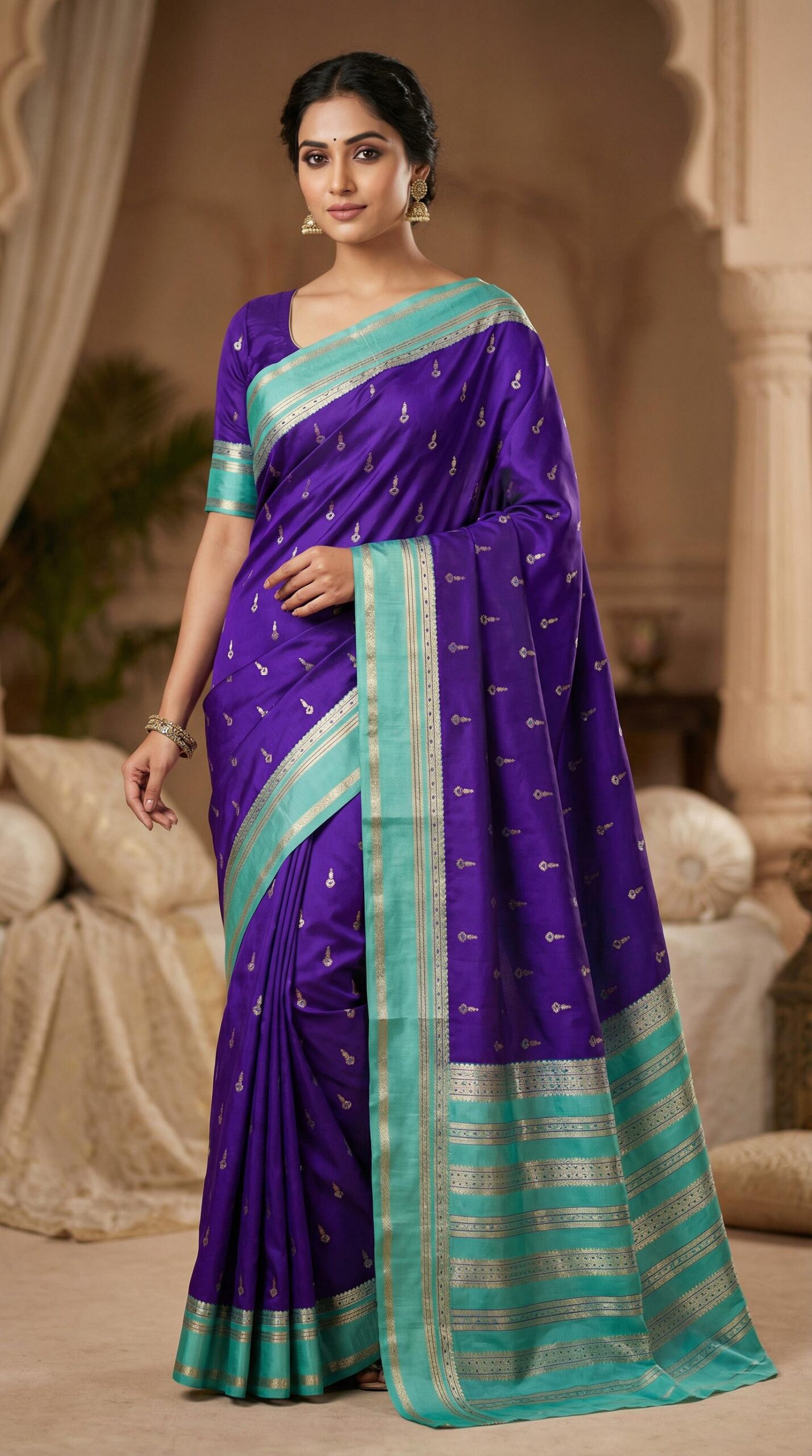 Blouse :- Contrast Matching silk weaving blouse piece with zari motifs and coordinated border for a complete traditional look.