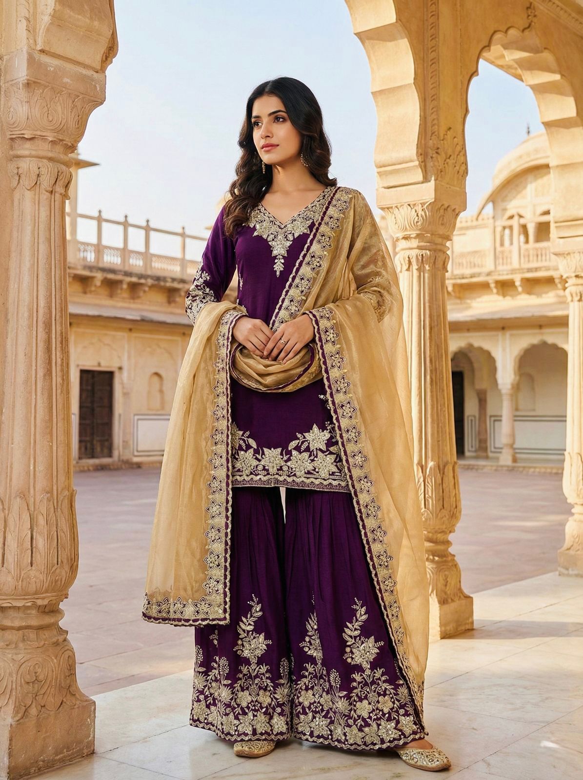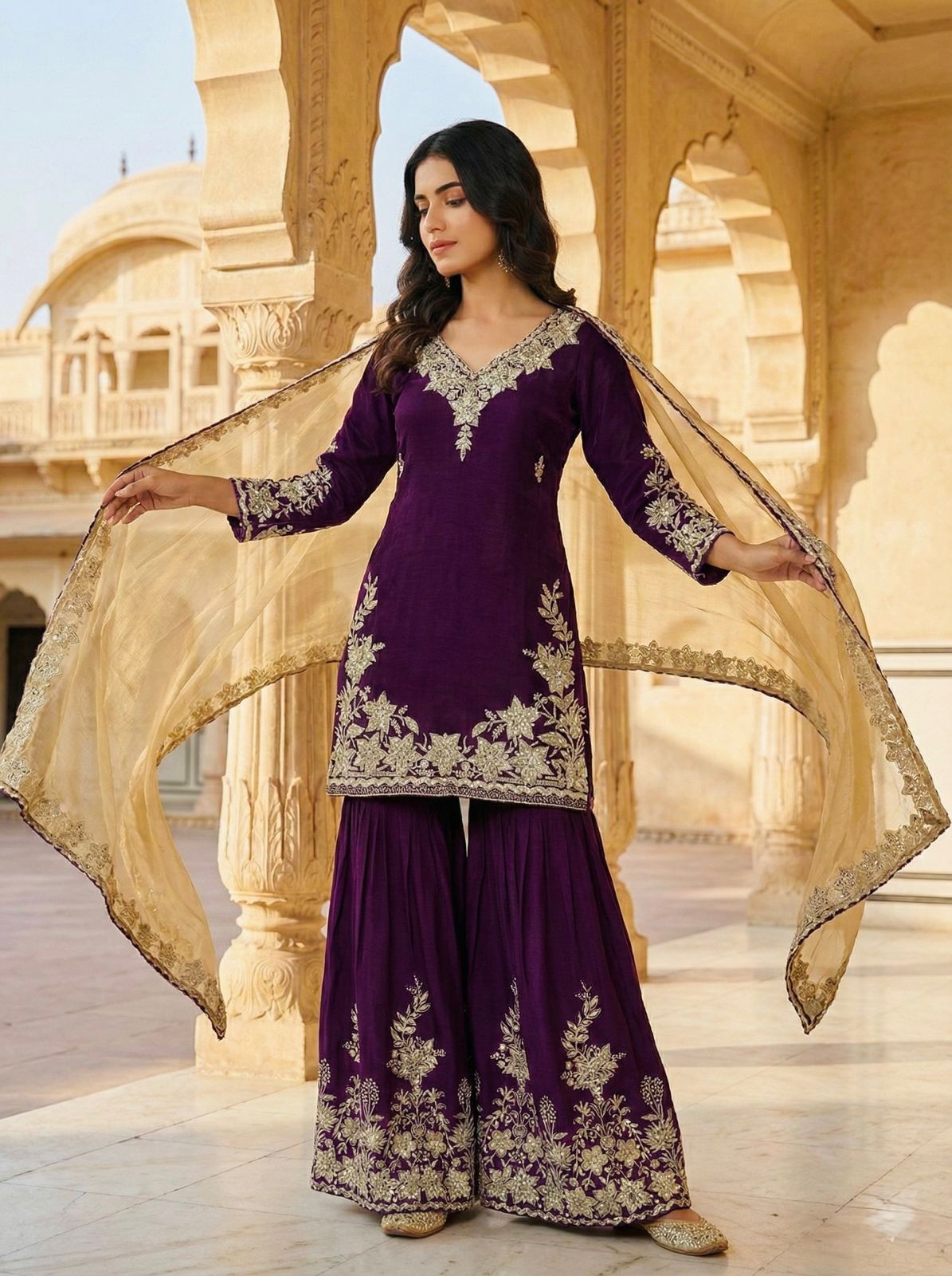 Purple Chinon Silk Lace Embroidery Work Salwar Suit