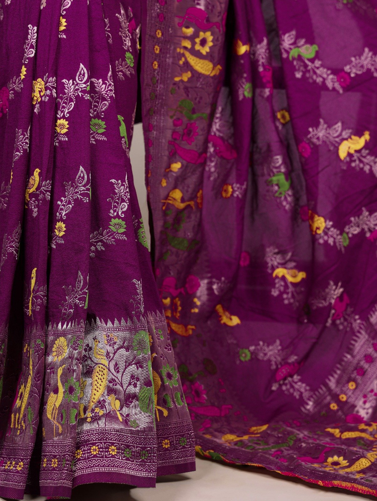 Gorgeous border work and soft drape make this saree stand out. Perfect festive wear.