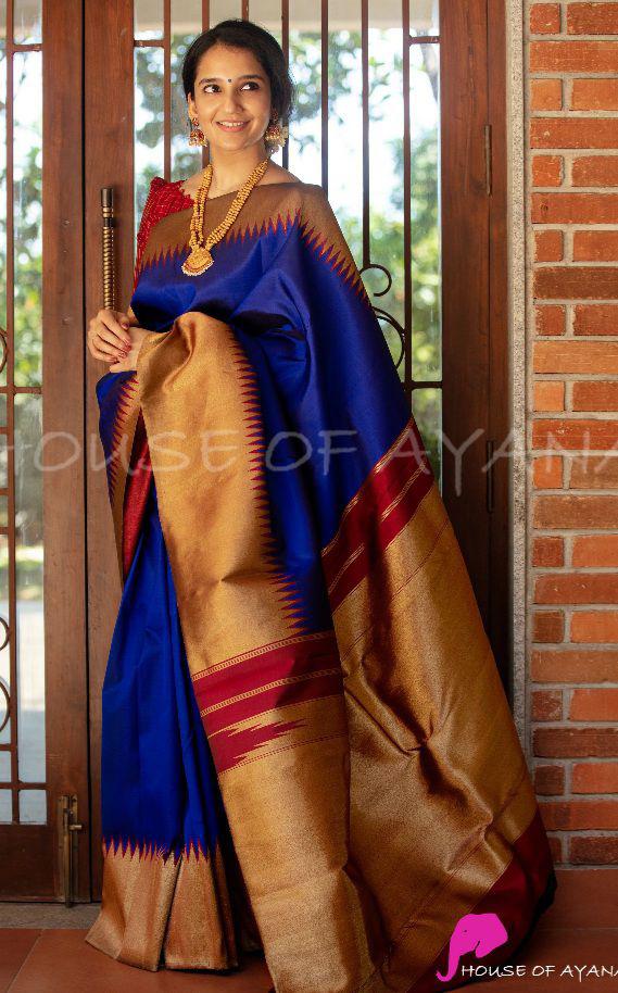 Royal Blue Soft Lichi Silk Jacquard Work Saree