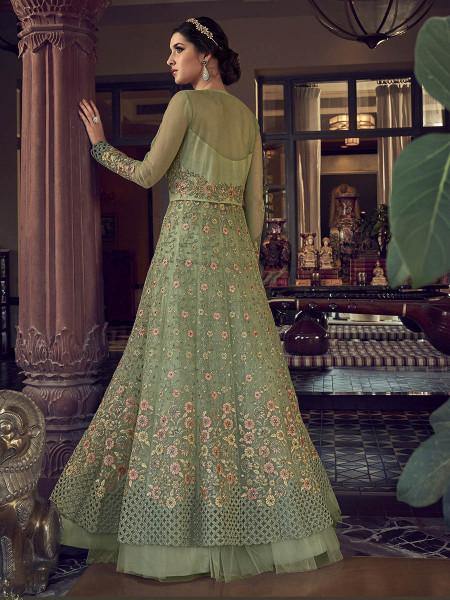 Sea Green Banglory Silk Embroidery Stone Work Salwar Suit