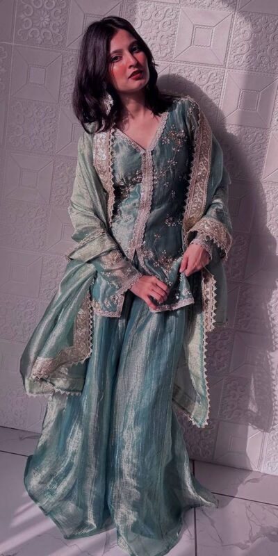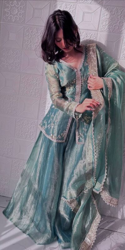 Sky Blue Fandy Silk Sequins Work Salwar Suit