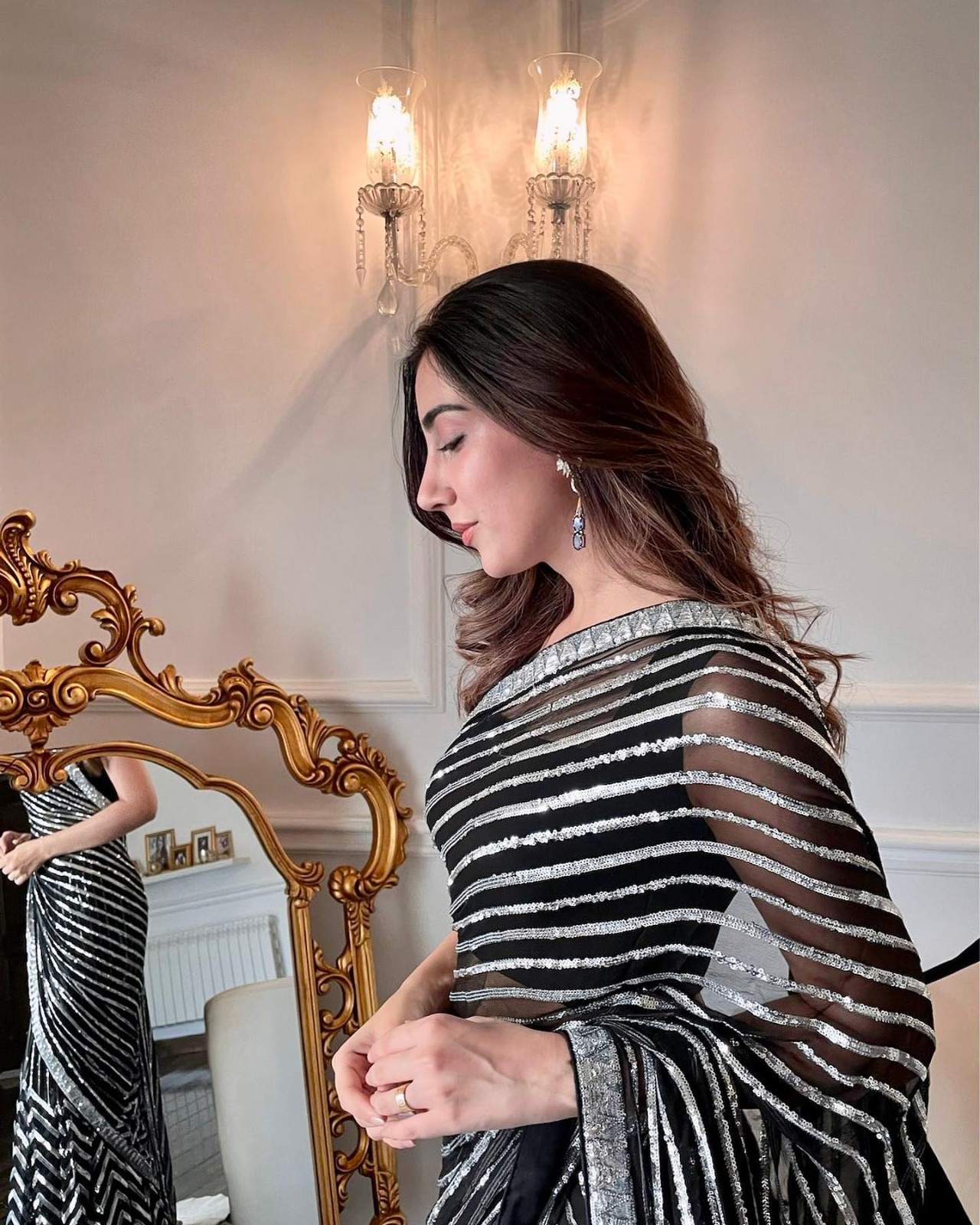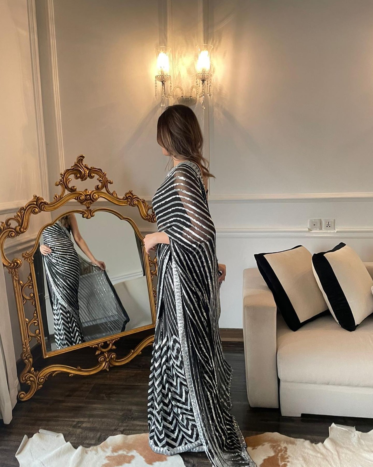 Special Black & White Color Georgette Embroidery Sequence Work Saree