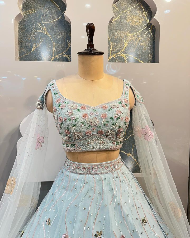 Light Blue Organza Silk Embroidered Lehenga Choli