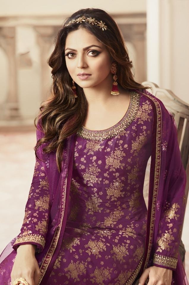 Special Purple Color Jacquard Silk Georgette Diamond Sharara Suit