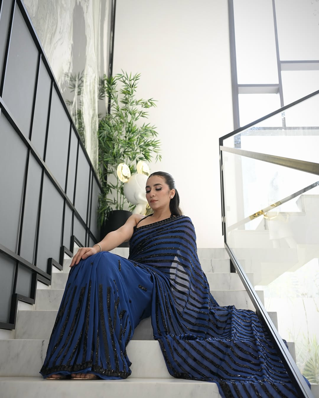 Navy Blue Georgette Sequence Work Saree