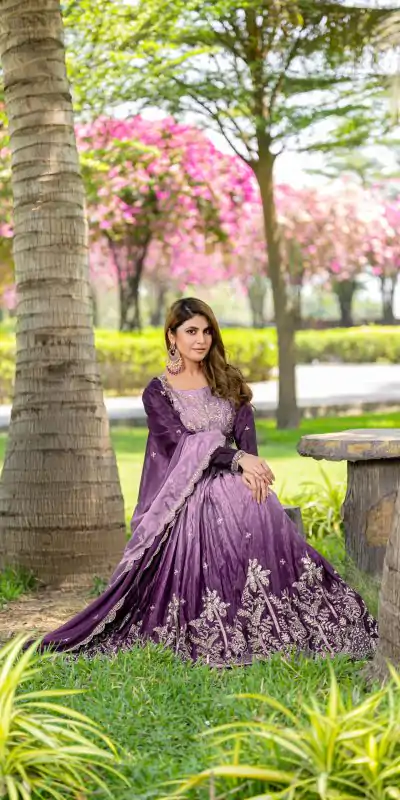 132 reviews for Purple Chinon Sequence Embroidery Work Gown