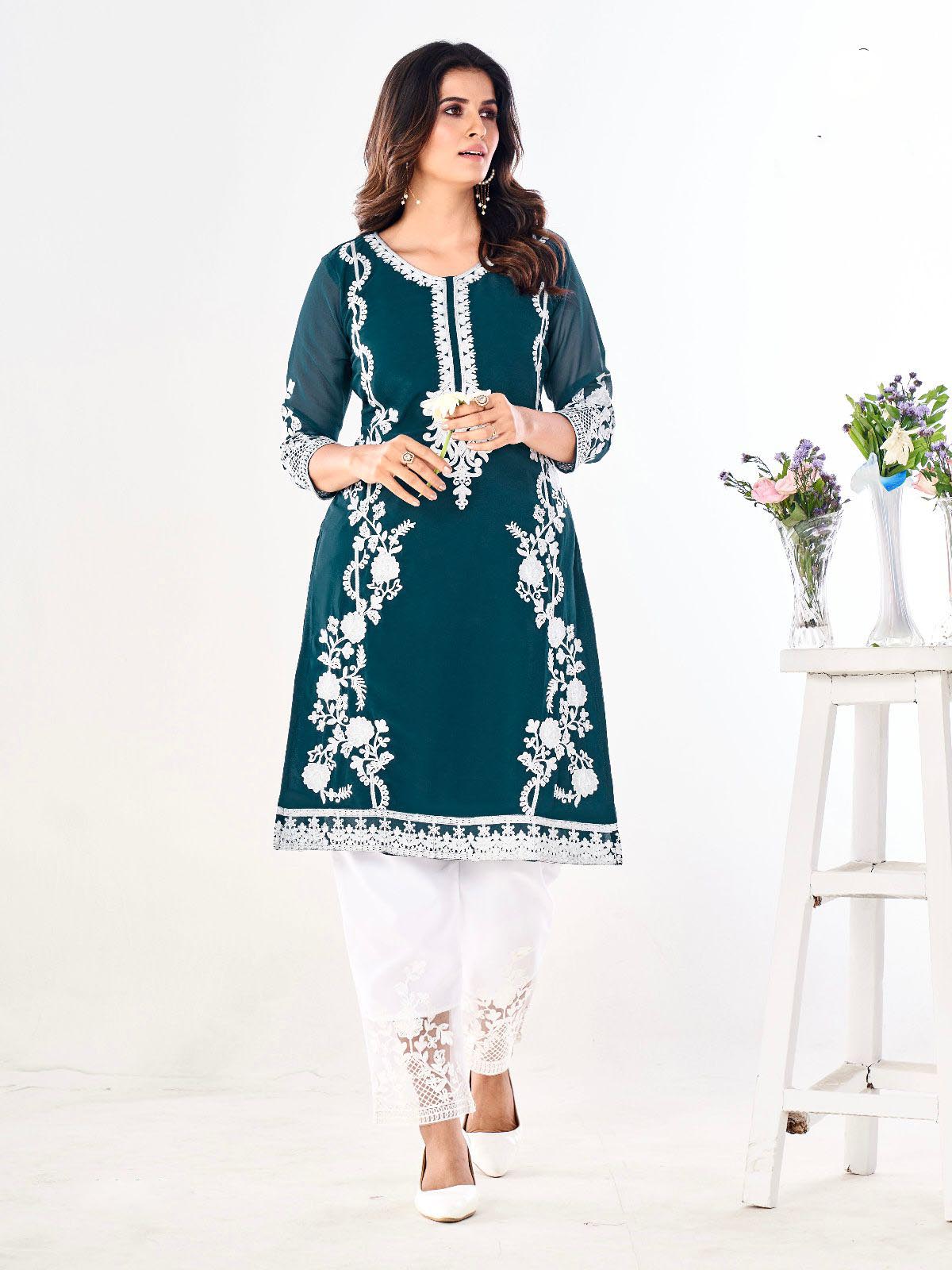 120 reviews for Dark Green Georgette and Heavy Embroidery work Kurti With Pant