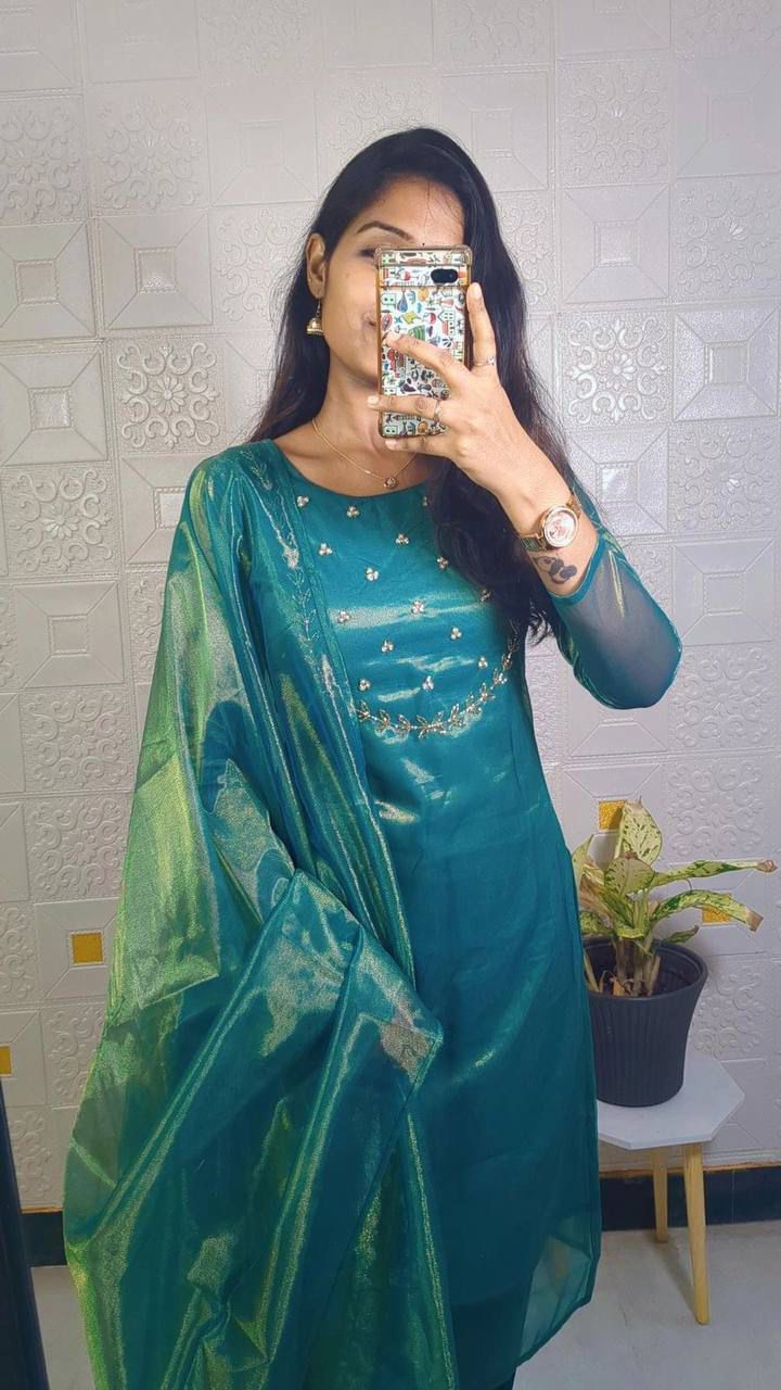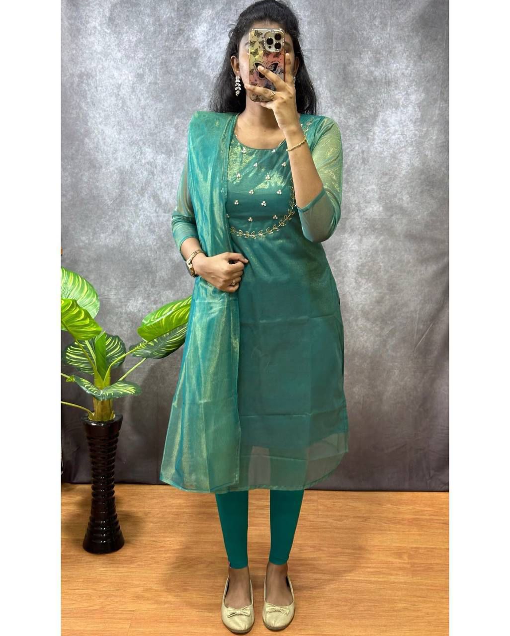 Superb Green Color Heavy Twill Golden Shining Fabric Kurti