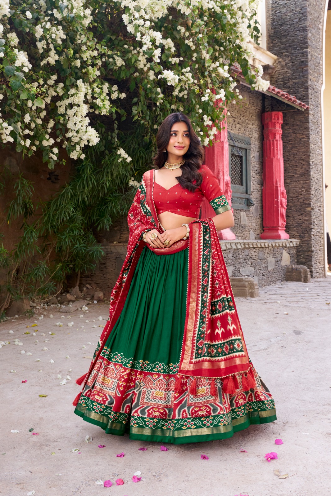 174 reviews for Green Tushar Silk Patola Printed Lehenga Choli