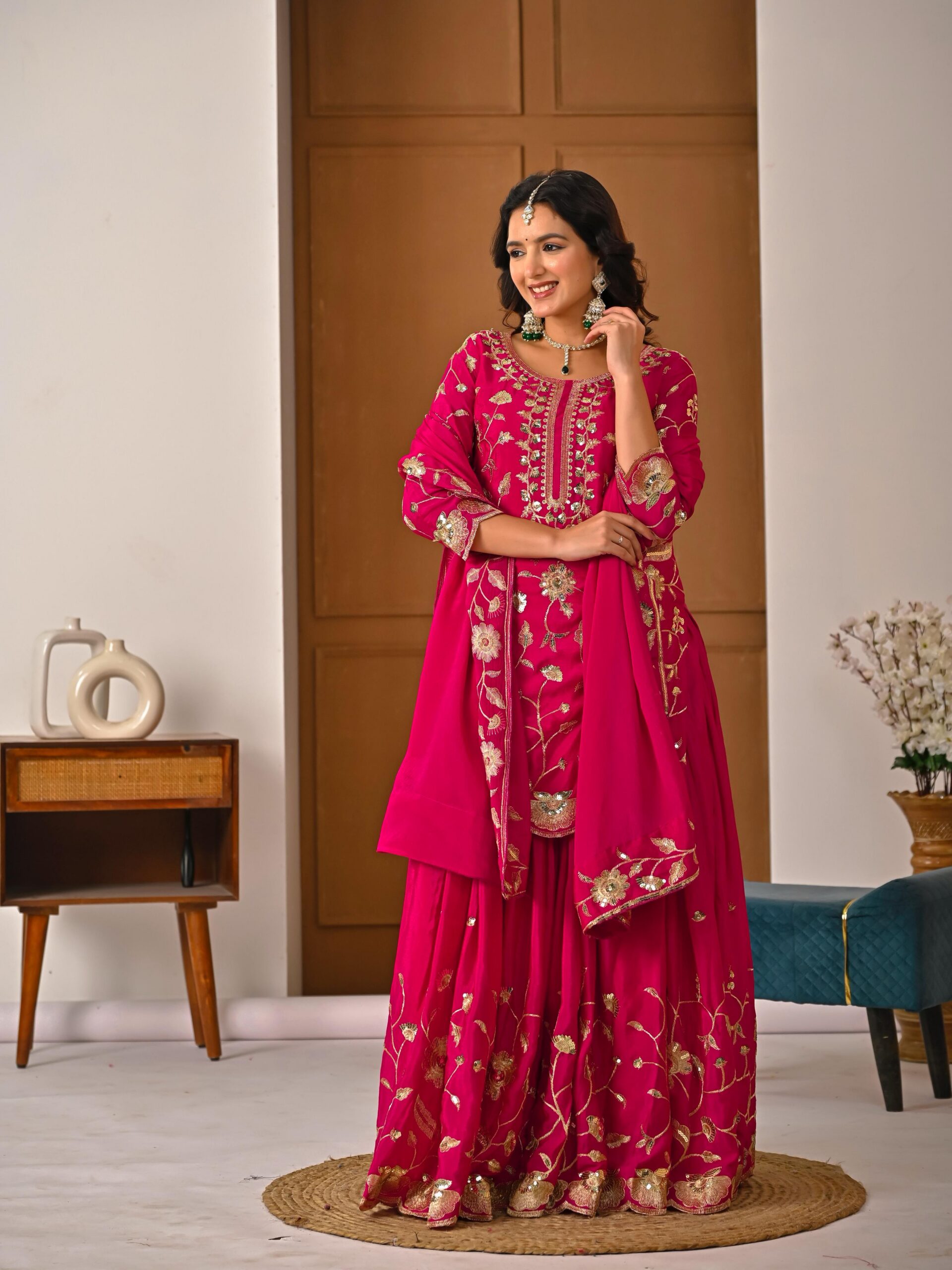 Dupatta Fabric :- Heavy Chinon Silk Material With 5 mm Sequence and Embroidery Work Fancy Lees.