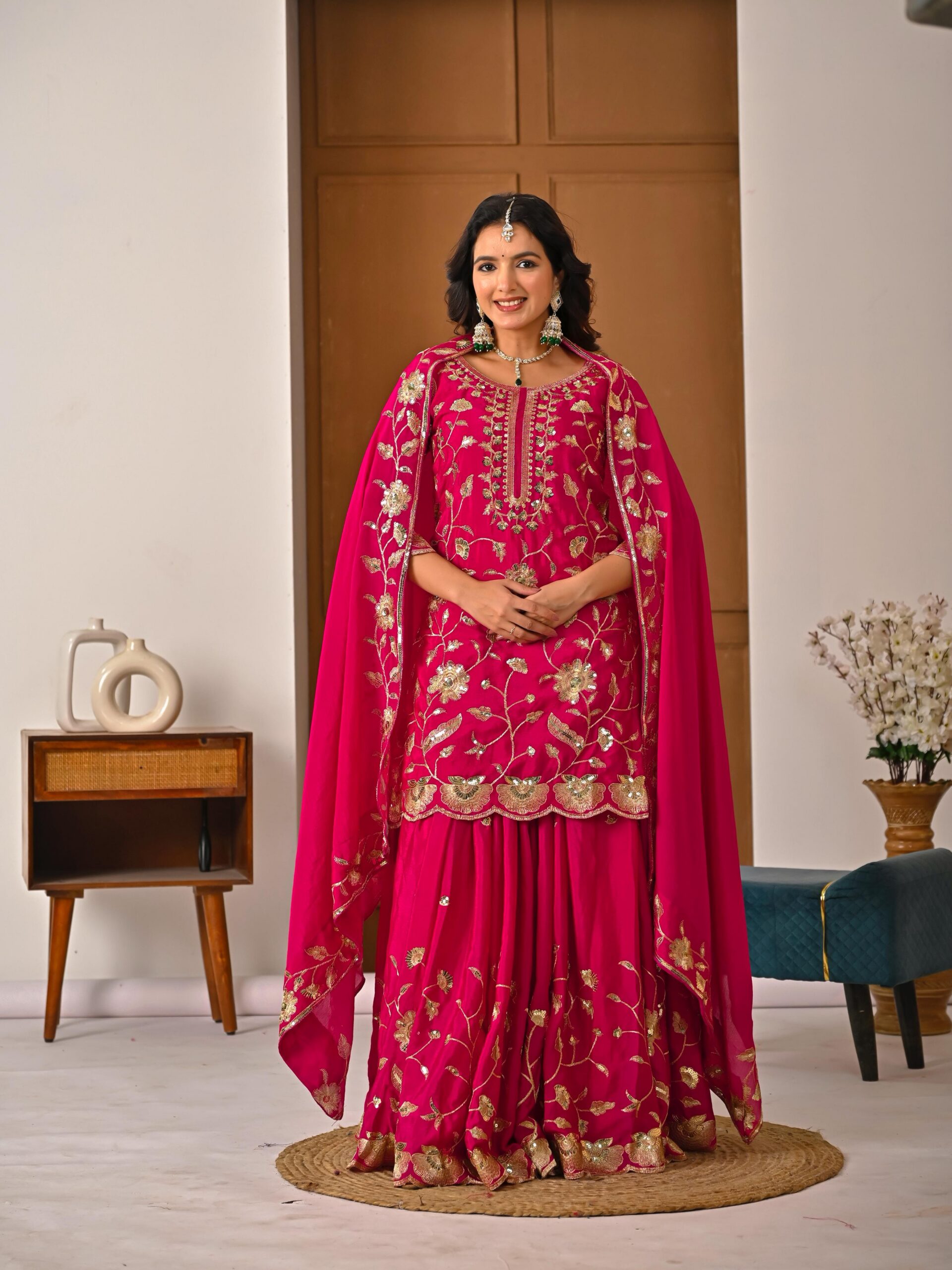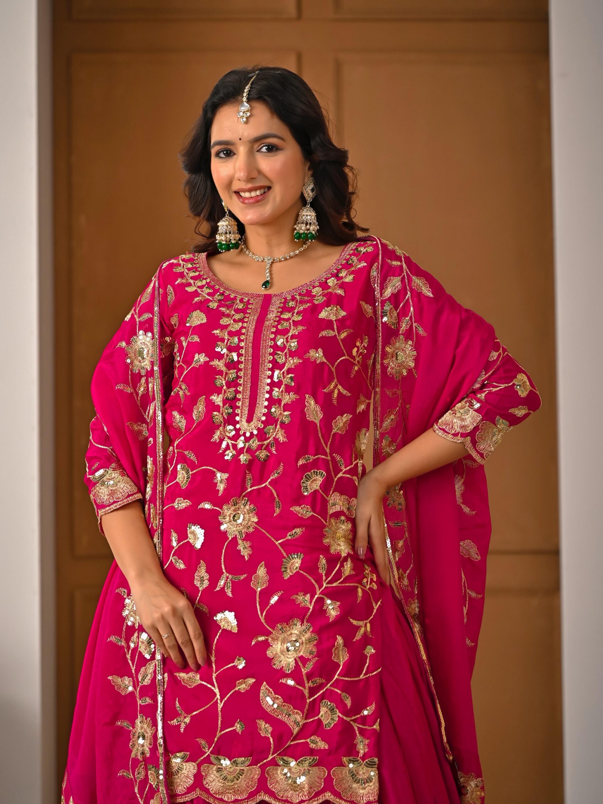Superb Pink Chinon Silk Embroider Work Salwar Suit