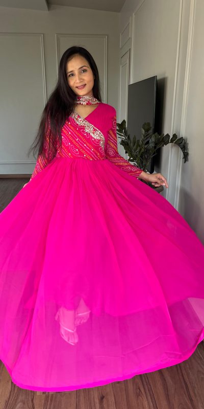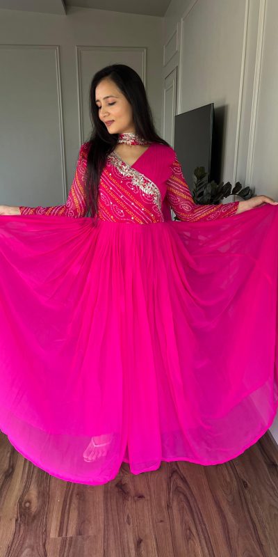 73 reviews for Pink Bandhej Fox Georgette Sequence Embroidery Work Anarkali Gown