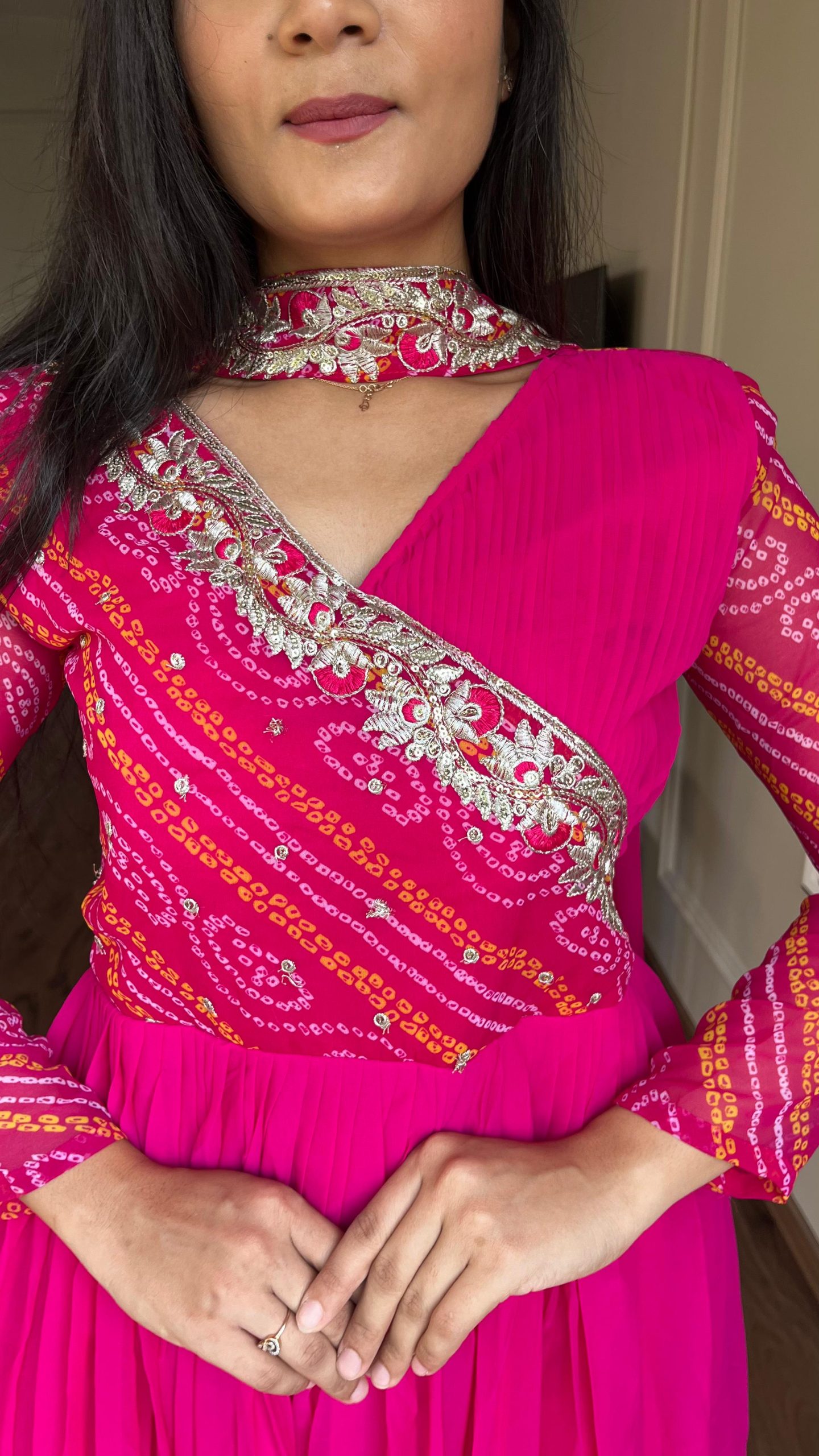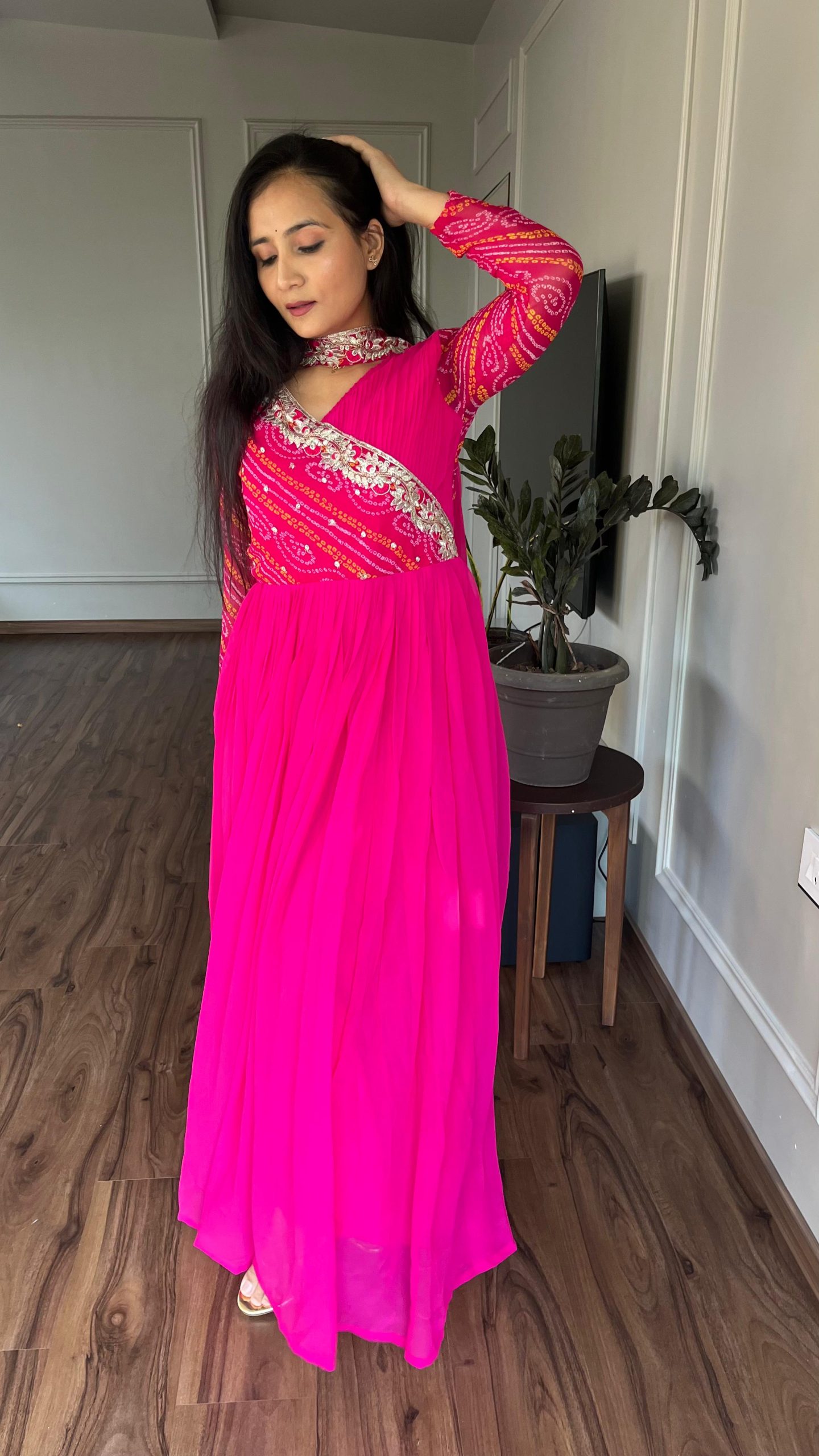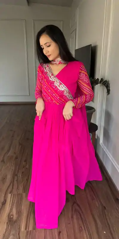 73 reviews for Pink Bandhej Fox Georgette Sequence Embroidery Work Anarkali Gown
