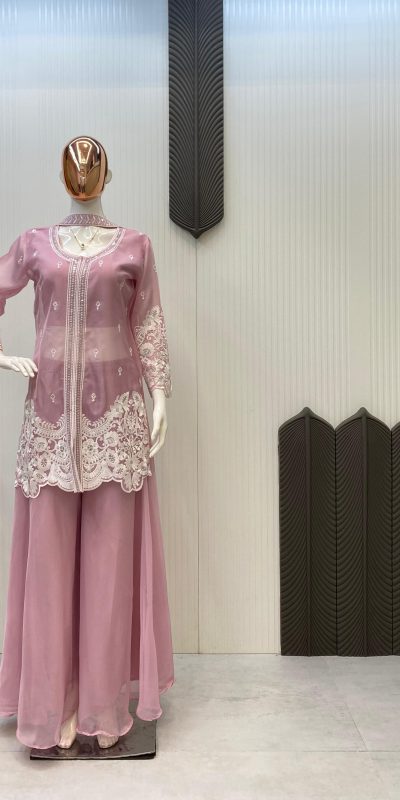 | Β Fabrics | Blouse : Soft Organza Inner : Micro Height : 14 inch Free Size Semi StitchedTop fabric : Soft Organza With Sequence Embroidery Work Size :Β Free Size Semi Stitched Height : 33 inch Circular Palazzo Fabric : Soft Organza Dupatta : Soft Organza With Sequence Embroidery (Pleated Ready Dupatta) |