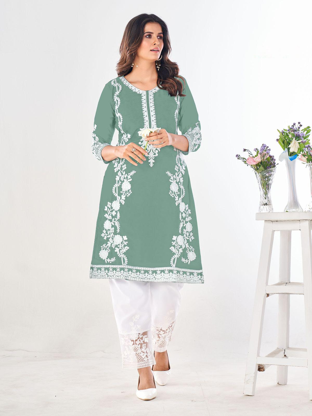 125 reviews for Pista Green Georgette and Heavy Embroidery work Kurti With Pant