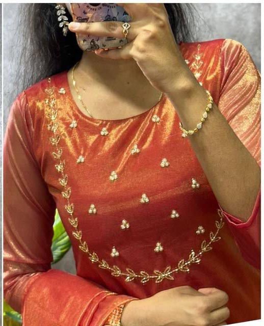 Red Heavy Twill Golden Shining Fabric Kurti