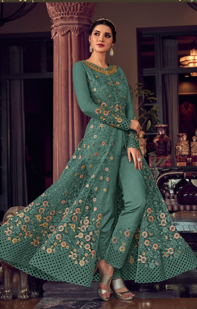 Teal Banglory Silk Embroidery Stone Work Salwar Suit