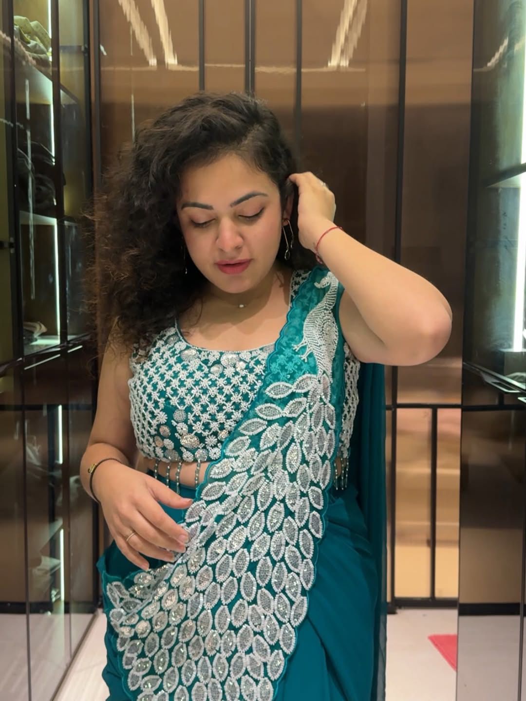 I wore this embroidered saree for an office event; subtle thread work, muted palette, and fuss‑free drape made it elegant without drawing excessive attention.