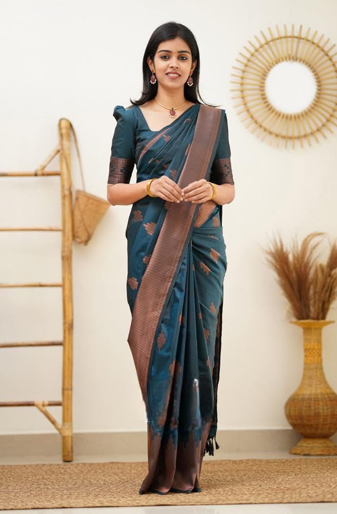 Teal Soft Lichi Silk Jacquard Rich Pallu Saree