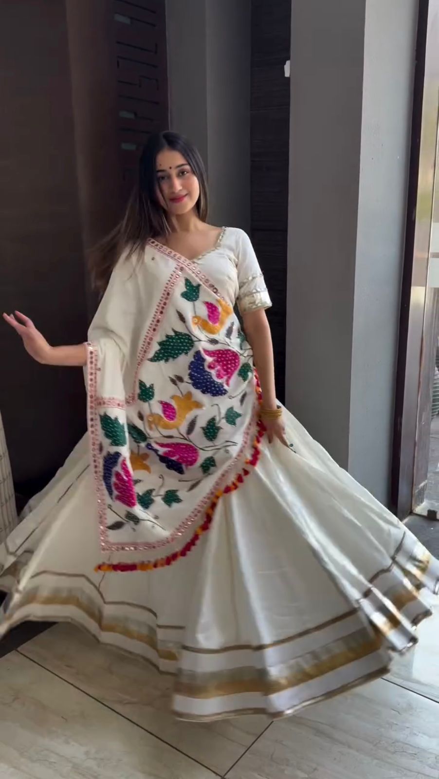 White Cotton Mirror Work Embroidery Lehenga Choli