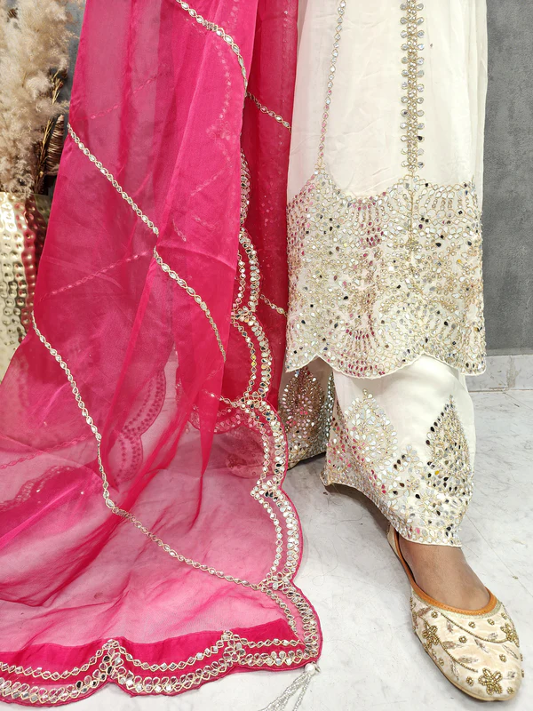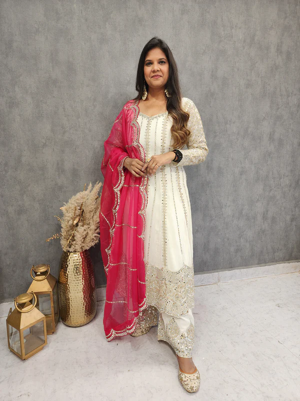 White Faux Georgette Sequence Thread Work Salwar Suit