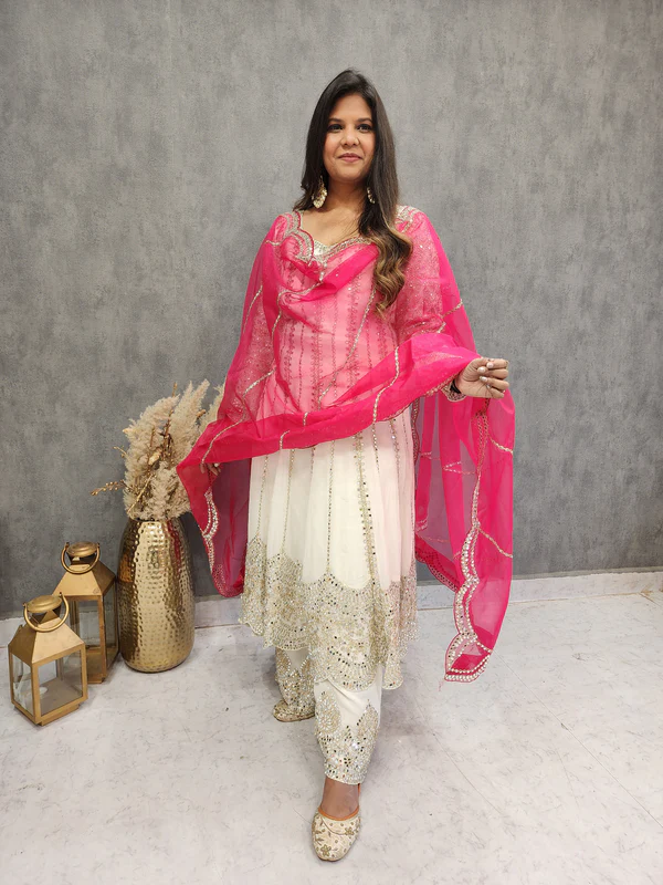 The salwar suit is beautiful and fits perfectly. The material is high-quality, and the embroidery is exquisite. Perfect for any traditional event.